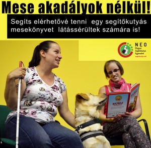 Szeretnénk, ha a vakok és a gyengénlátók is ingyenesen meghallgathatnák a Kuku és barátai – Ismerjük meg közösen a segítőkutyák világát! című mesekönyvet. Ezzel a mesekönyvvel a látássérült gyermekek és szüleik is átélhetik az állatok és a mese jótékony hatását. A céljaink megvalósítása érdekében adománygyűjtő felületet hoztunk létre, ahol támogathatod a munkánkat.